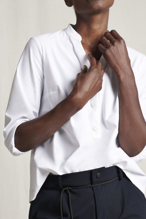 This item is made from highly breathable, light, stretch Technical Jersey, which provides extra comfort and a pleasant feeling against the skin. Our Bella blouse is suitable for any occasion, making you stand out in a crowd. The clear print with classic shirt detailing, long sleeves and feminine waistline will be a great addition to your clothing arsenal. Wear this top with a suit or alongside a pair of jeans.