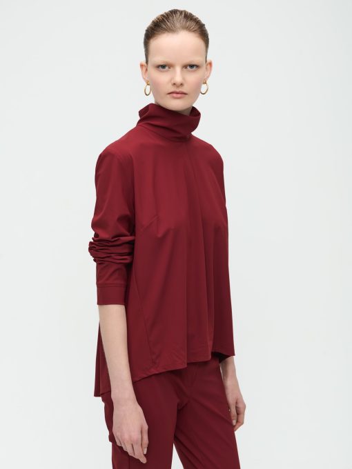 The Dolce Vita top is a chic and special garment made from high-end Technical Jersey fabric. With its loose feminine silhouette, the Dolce Vita top offers a relaxed yet stylish look. The long sleeves and turtleneck add a touch of sophistication and provide extra coverage. Additionally, the top is designed to be longer at the back, adding a contemporary twist to the overall aesthetic.