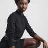 - Subtle stand-up collar