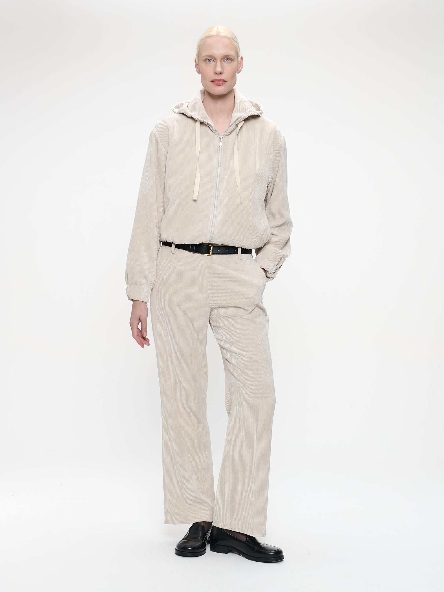 Effortlessly cool and understated, the Golia jeans jacket is a versatile piece that complements any off-duty look. Crafted from a soft stretch corduroy blend, it features a relaxed silhouette with a drawstring hood, front zip closure, and elasticated cuffs. Whether paired with matching pants or layered over a dress, this jacket adds a modern touch to your wardrobe.