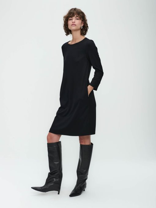 The Joan dress from the Essential Collection offers a luxurious feel with its stretch-viscose Italian Terry jersey fabric. With an A-line silhouette and relaxed fit, it combines comfort with effortless style.