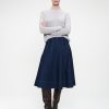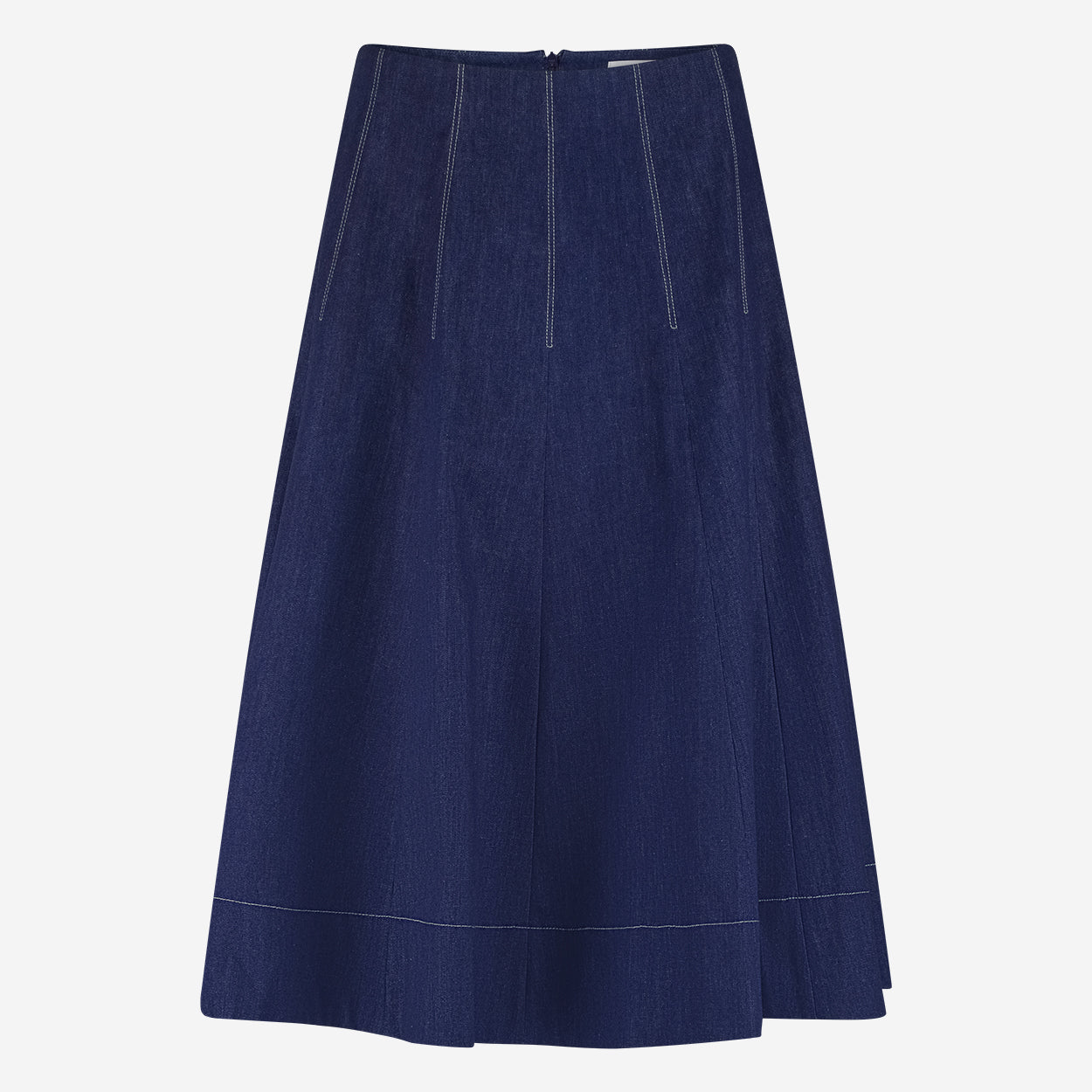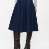A-line denim Mishele skirt that brings together structure and femininity. The stitched pleat details add visual interest and shape, while the mid-calf length and dark indigo color provide timeless elegance. Pair it with soft knitwear or tailored shirts for versatile styling throughout the season.