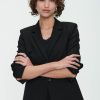 - Subtle padded shoulders, long sleeves
