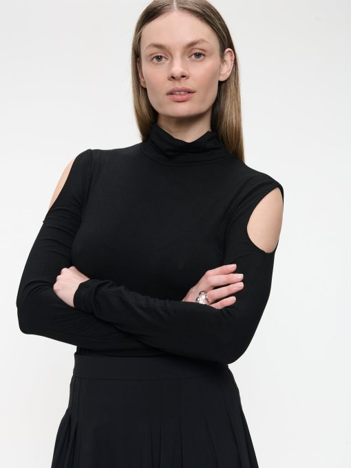 Enhance your style with this viscose top, designed with a slim silhouette for a flattering fit. The unique upper sleeve opening adds a touch of contemporary flair, making it a perfect choice for both casual and chic occasions.
